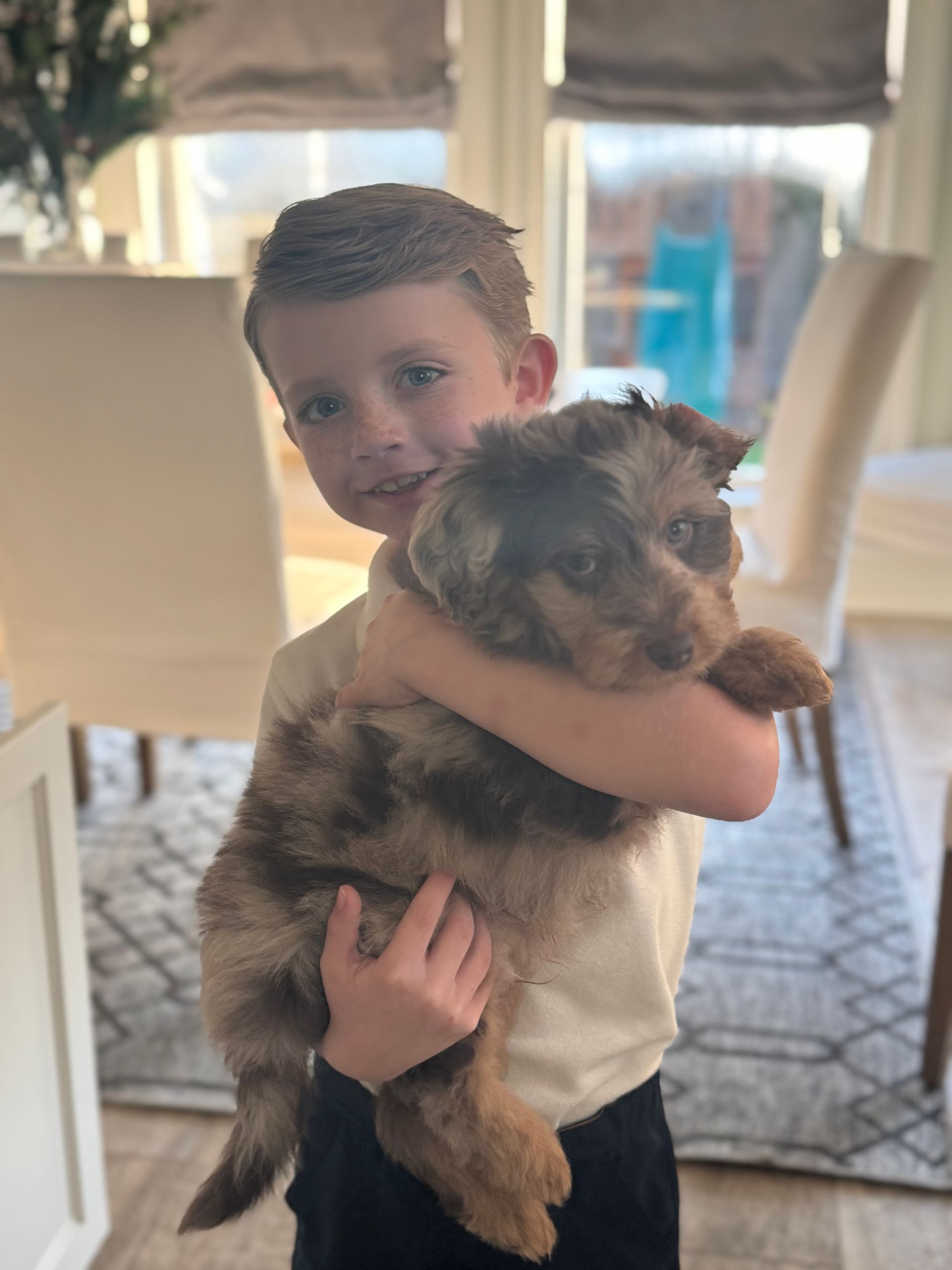 After your puppy is 9 weeks, and received all their vaccinations, you'll be able to come pick your Aussiedoodle pup up!