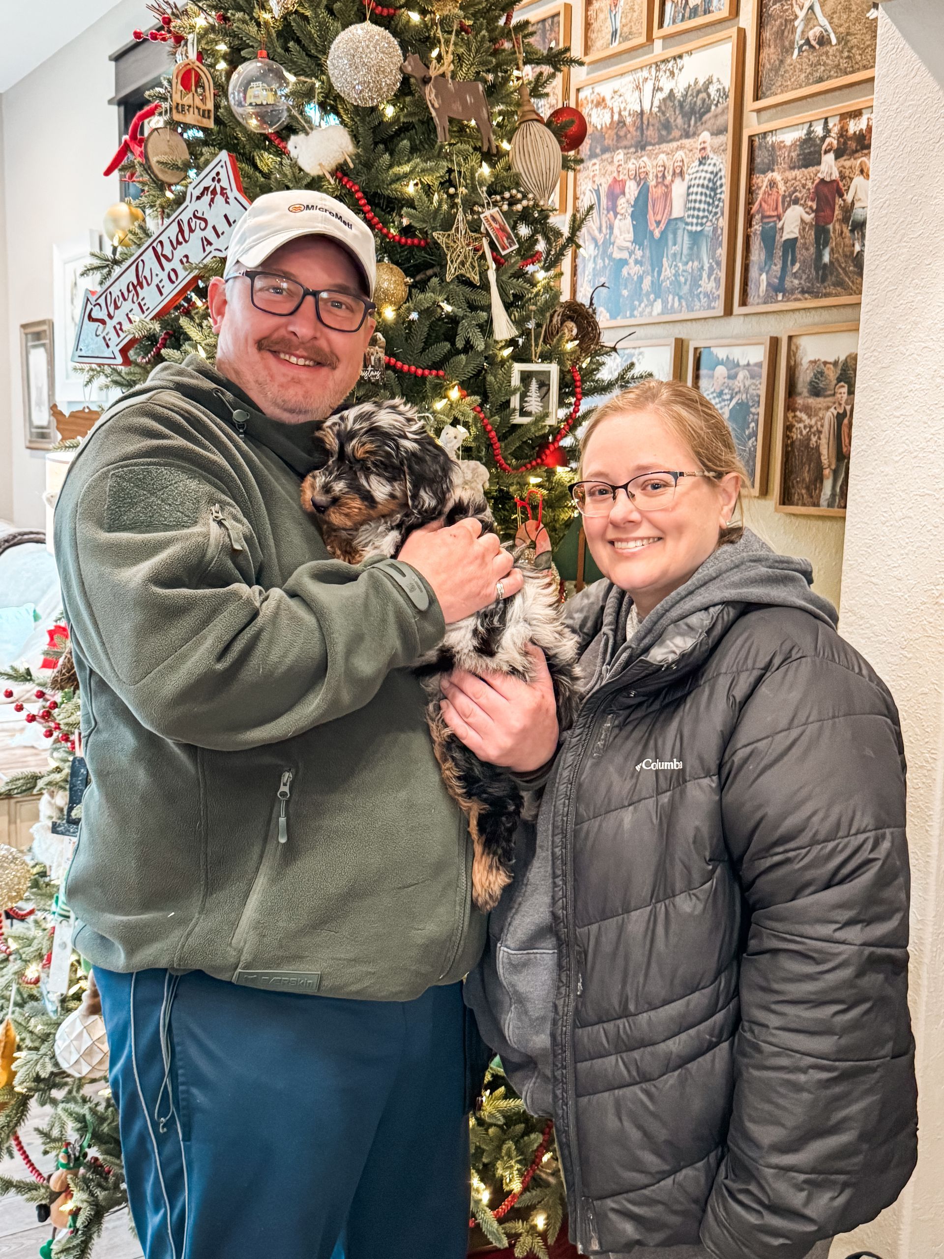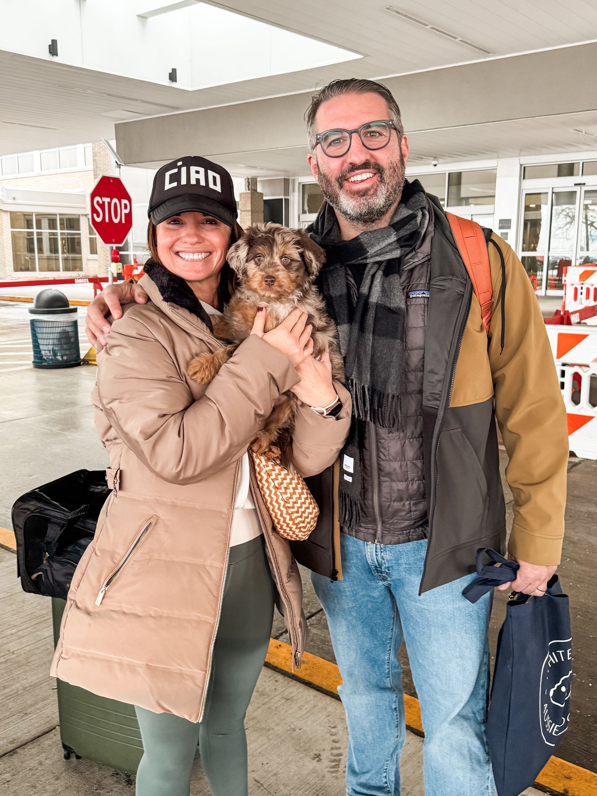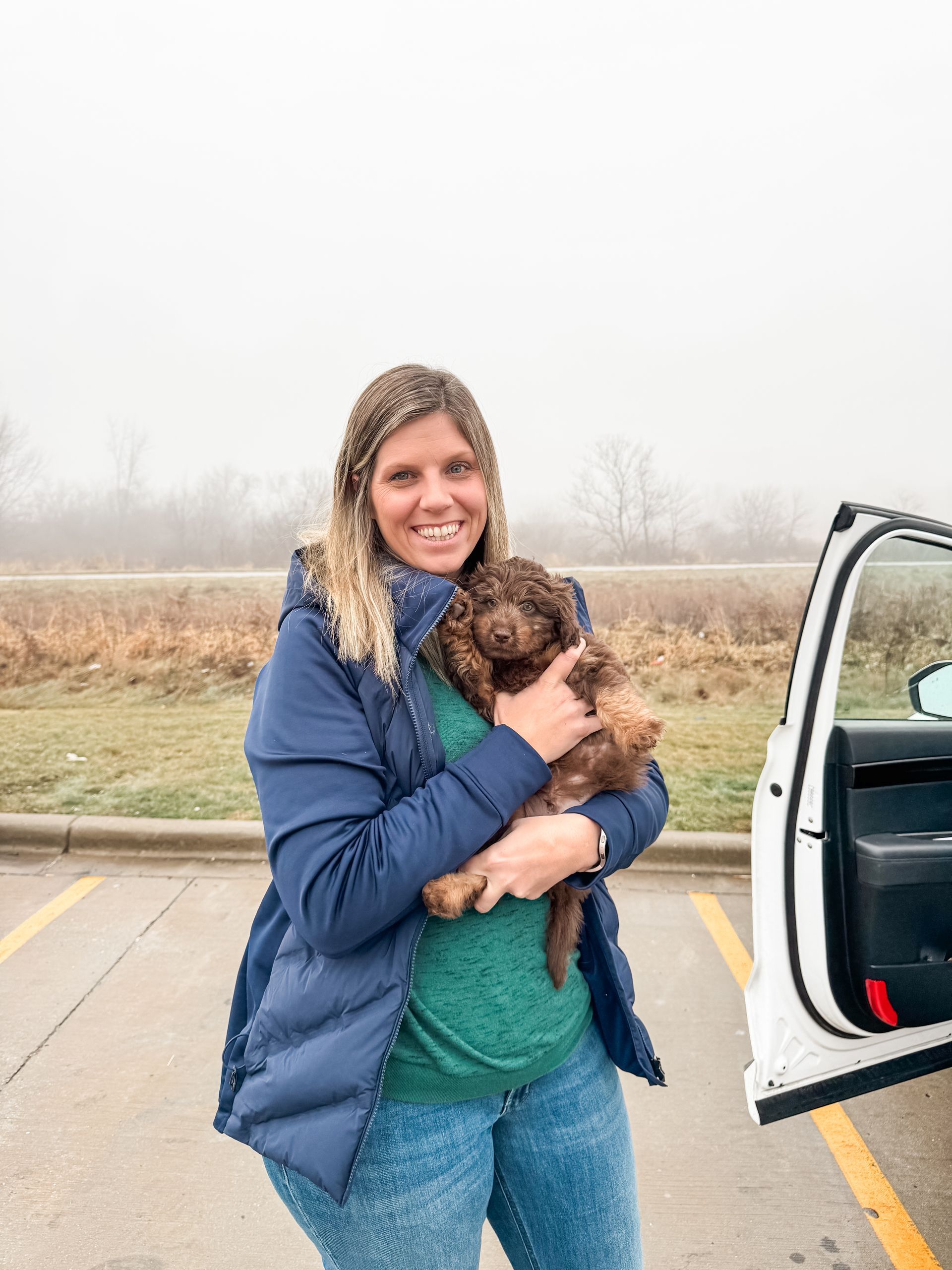 As we get closer to puppy pick up you will have received an email from us to help you get ready for the big day. We include a list of our favorite grooming items, treats, toys, and so much more. We send our puppies home with all their information on vaccinations, microchip, and certificate of health. We also include a blanket with Littermates' and Mom's scents, puppy leash and collar, and a food starter bag in our branded welcome bag!